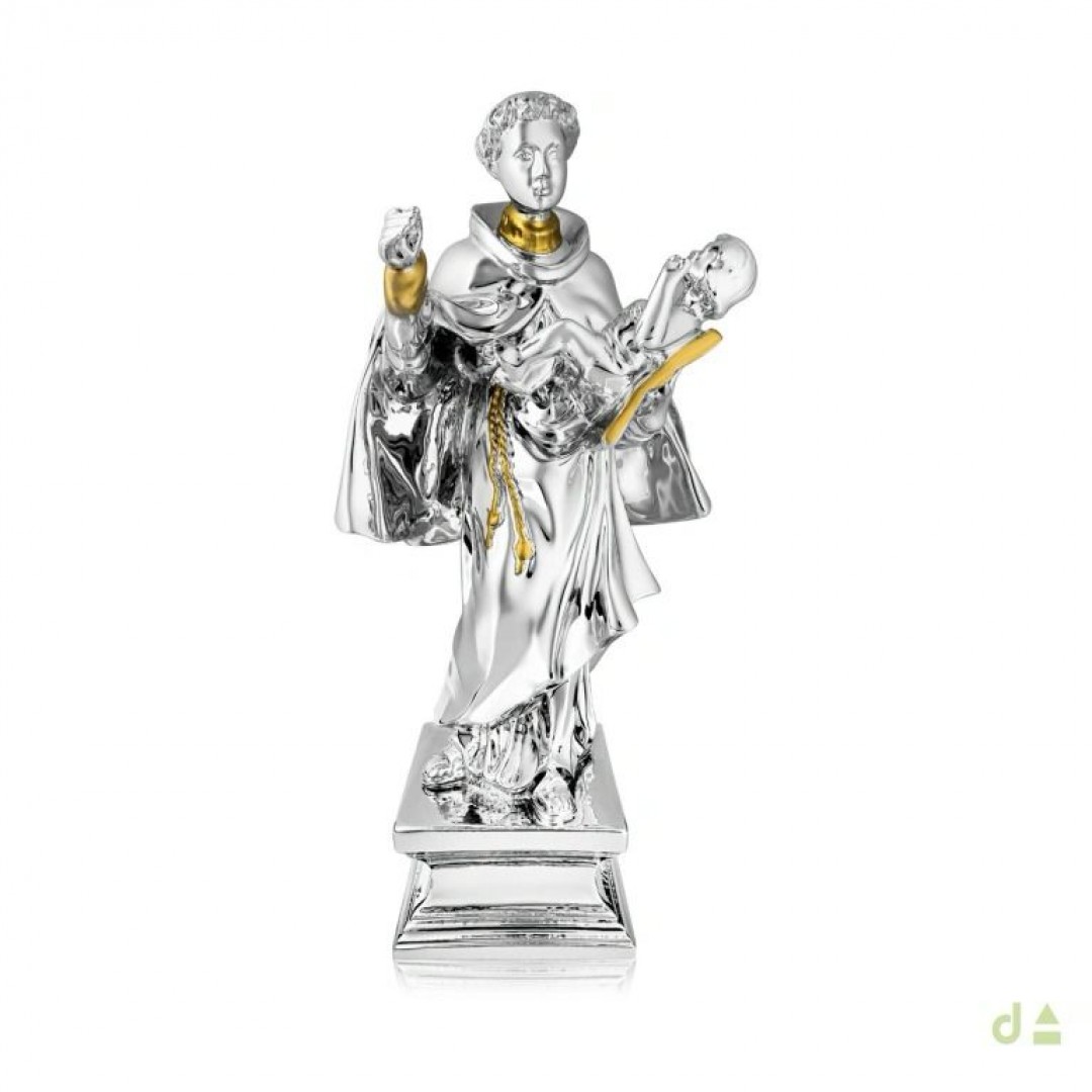 Bibelot Dhome Santo António em PVD prateado com apontamentos em dourado.