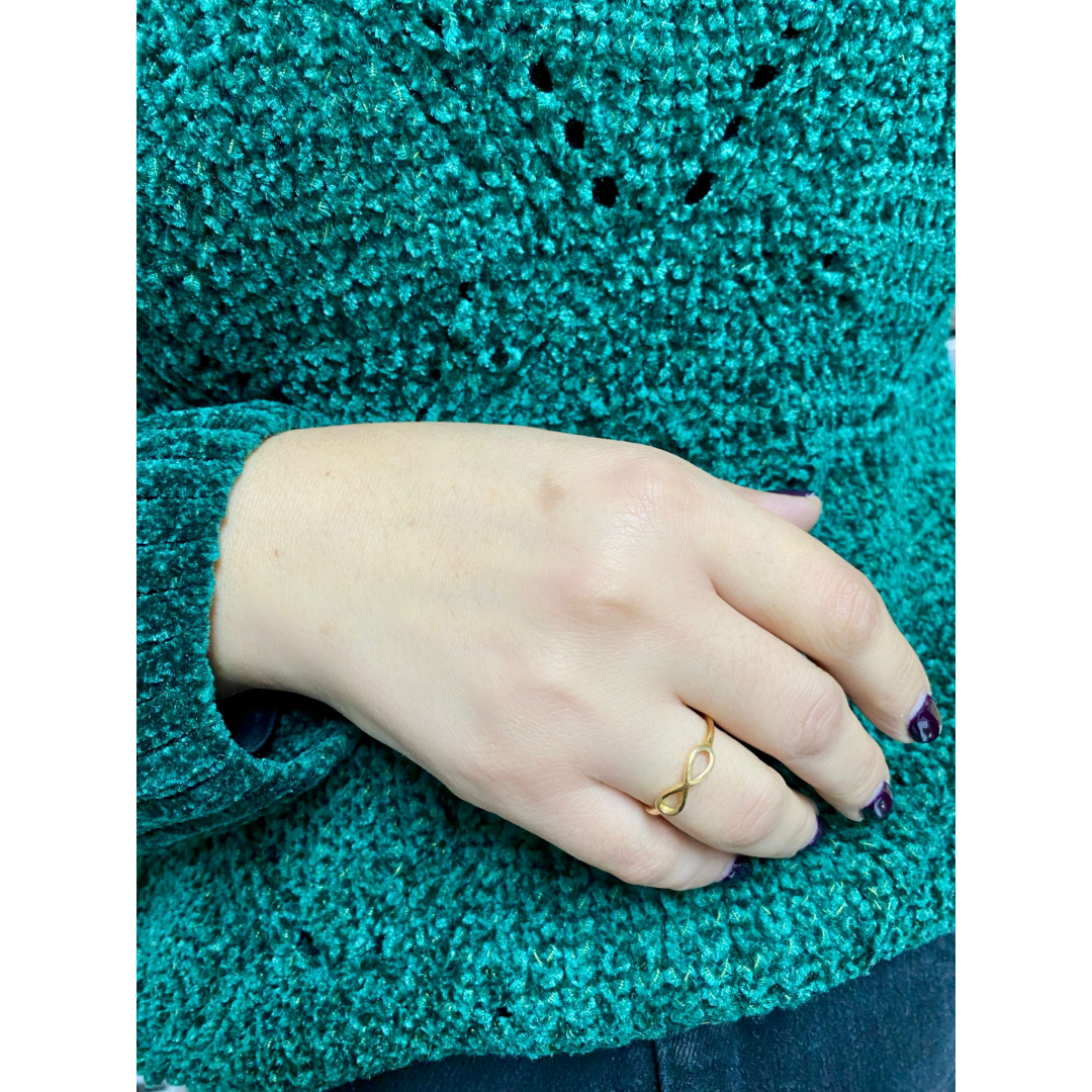 Anel em ouro amarelo joalharia 19k com o símbolo do infinito, que representa eternidade, amor e equilibrio.