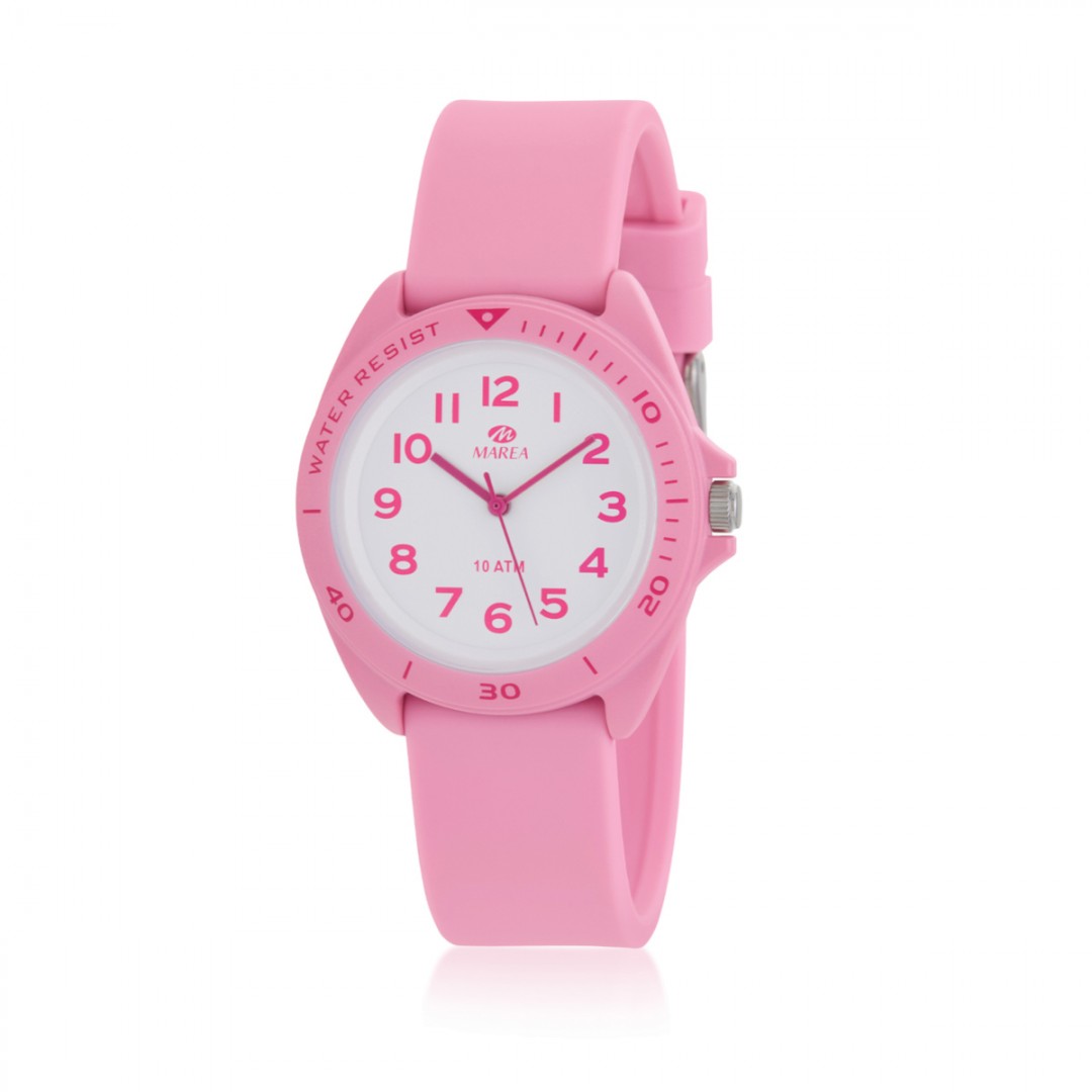Relógio MAREA, para criança, um modelo desportivo simples e confortável para o dia a dia. Resistente à água até 100metros, não há desculpas para não brincar na água.