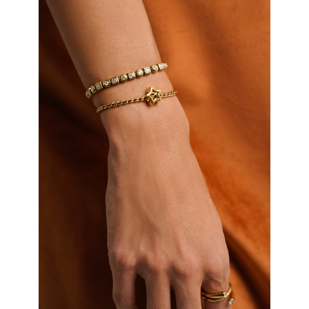 Charme tridimensional dourado com a forma estrela com recorte no centro. Os charmes da coleção Energy for Life dão-te a possibilidade de contares a tua história de forma totalmente personalizada. Uma memória, um momento inesquecível eternizado ao pescoço ou pulso. Compatível com todos os masters da coleção Energy for Life (colares, pulseiras, brincos e escravas com fecho).