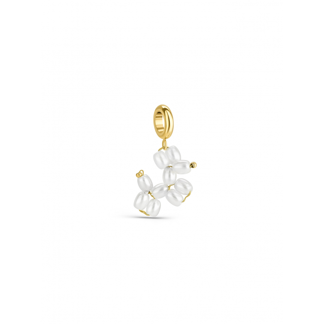 Charme delicado em formato de cão, composto por pequenas pérolas brancas organizadas de forma orgânica, criando uma silhueta suave e elegante. O aro dourado acrescenta brilho e equilíbrio ao conjunto, resultando numa peça feminina e cheia de significado. Os charmes da coleção Energy for Life permitem personalizar colares e pulseiras, contando histórias únicas através de símbolos especiais. Compatível com todos os masters da coleção Energy for Life (colares, pulseiras, brincos e escravas com fecho).