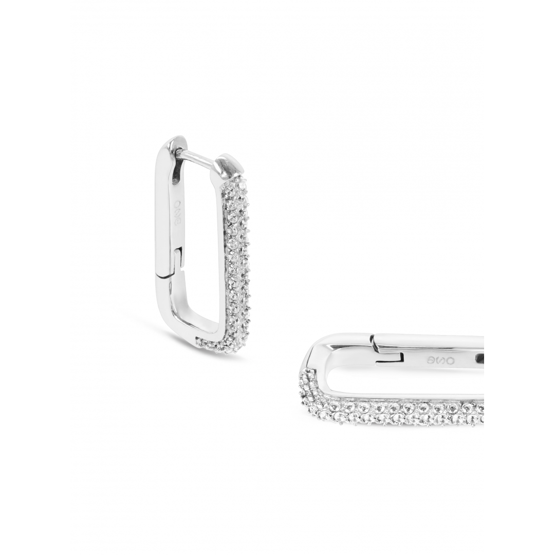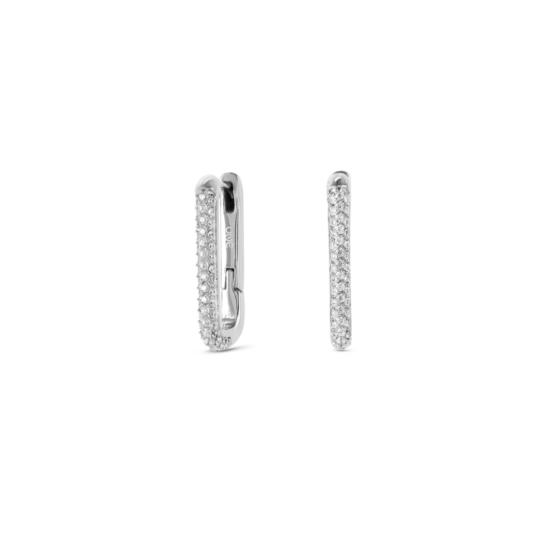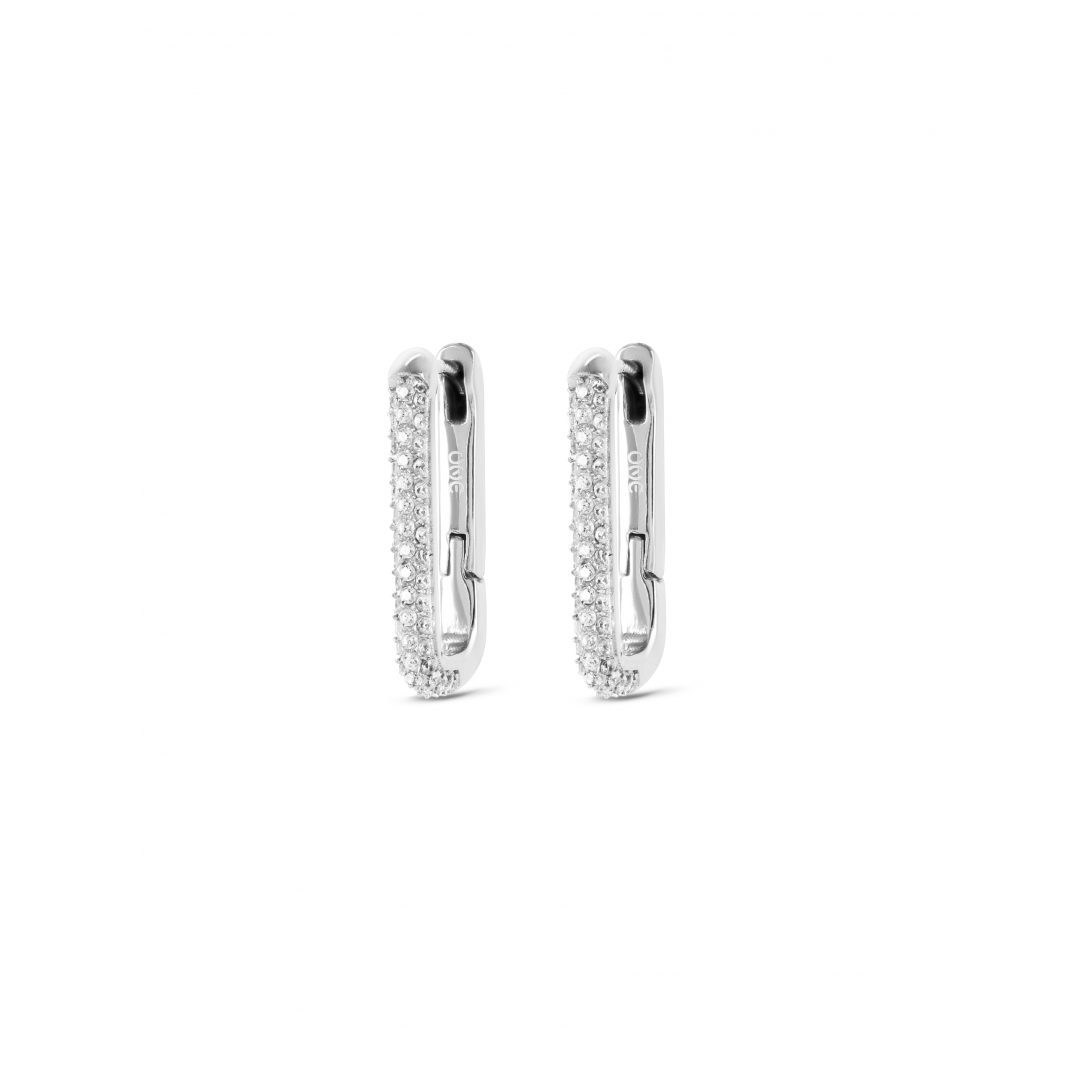 Os brincos Geometric Affair prateados com cristais zircónias brancas brilhantes vão adicionar um toque de luminosidade a qualquer o look. Estes brincos têm um design geométrico moderno com uma estrutura arredondada onde se destacam os cristais zircónias na parte da frente dos brincos. Uma estética contemporânea e arrojada que torna os brincos compatíveis com looks mais formais ou mais casuais.