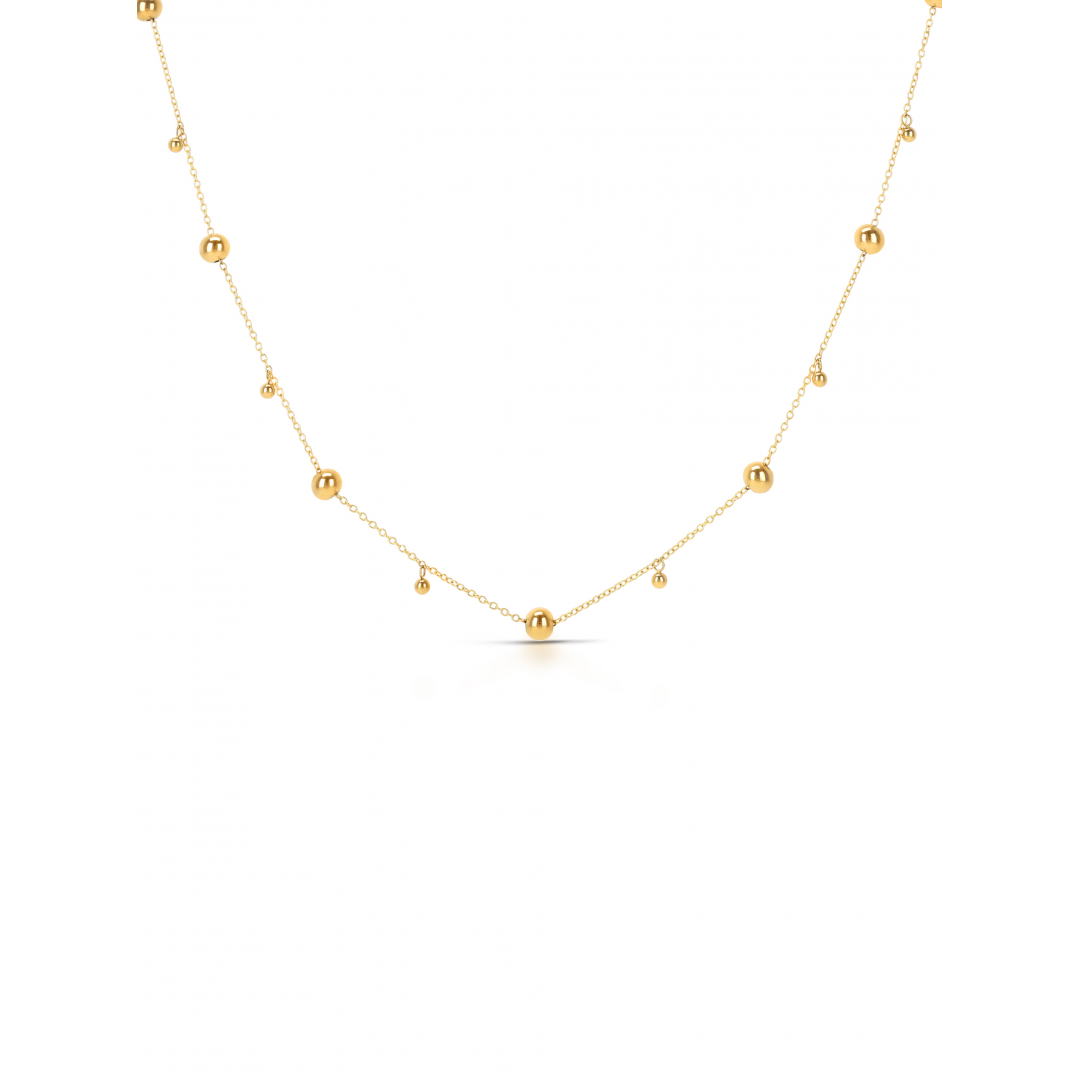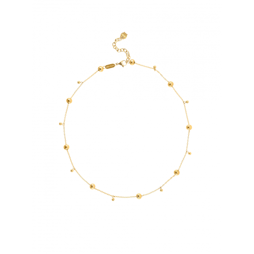 O colar Petite da coleção Infinity em dourado é uma peça muito delicada e elegante. É constituído por uma malha de elos dourados muito finos e tem, de forma alternada em todo o fio, esferas douradas de maior e menor dimensão. O colar termina com um fecho em mosquetão e uma série de elos para torná-lo mais versátil a diversos comprimentos. A coleção Infinity presta homenagem ao símbolo do infinito e à força motora da ONE que é o tempo.