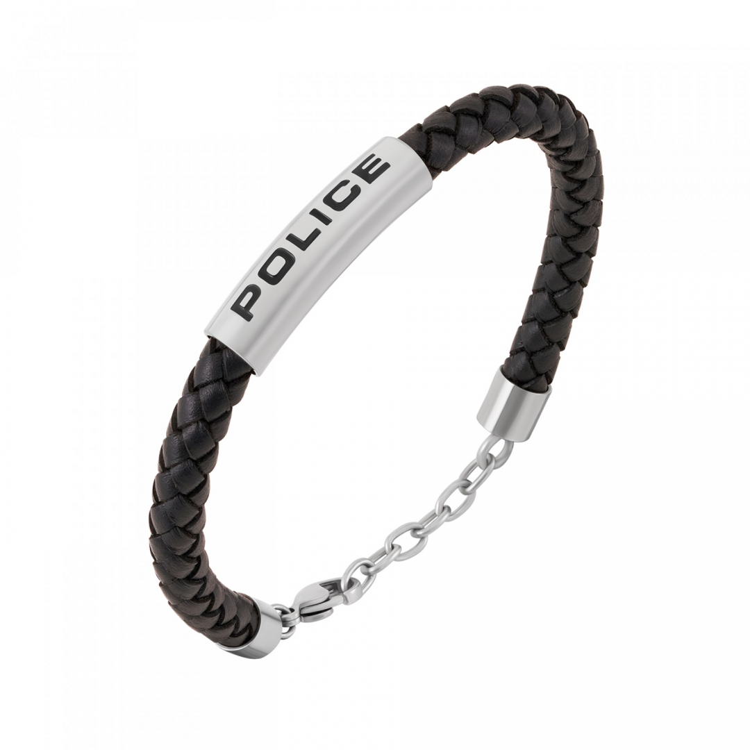 Skyfall combina charme rústico com sofisticação, exibindo couro trançado preto adornado com o clássico emblema da POLICE, perfeito para quem preza por um carisma natural.